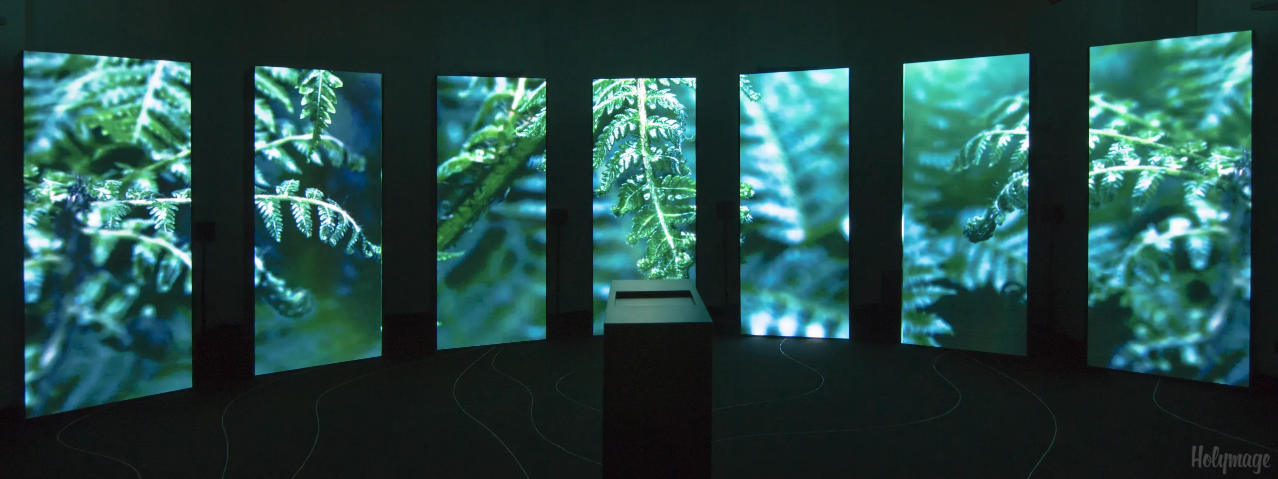 L’univers du parfum, conçu autour de la puissance végétale, a tout d’abord été mis en scène dans l’imposant escalier de l’hôtel. Une jungle sauvage et luxuriante appelait à la contemplation et accompagnait le visiteur dans la montée des marches. La salle suivante constituée de totems LED proposait une création immersive et éclatante dont la pulsation précédait la révélation du parfum.